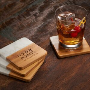 Marble And Bamboo Coaster Set